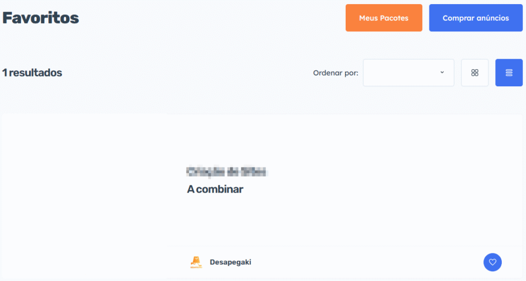 Os Favoritos são anúncios que você se interessou e quer salvar para poder visualizar mais tarde.